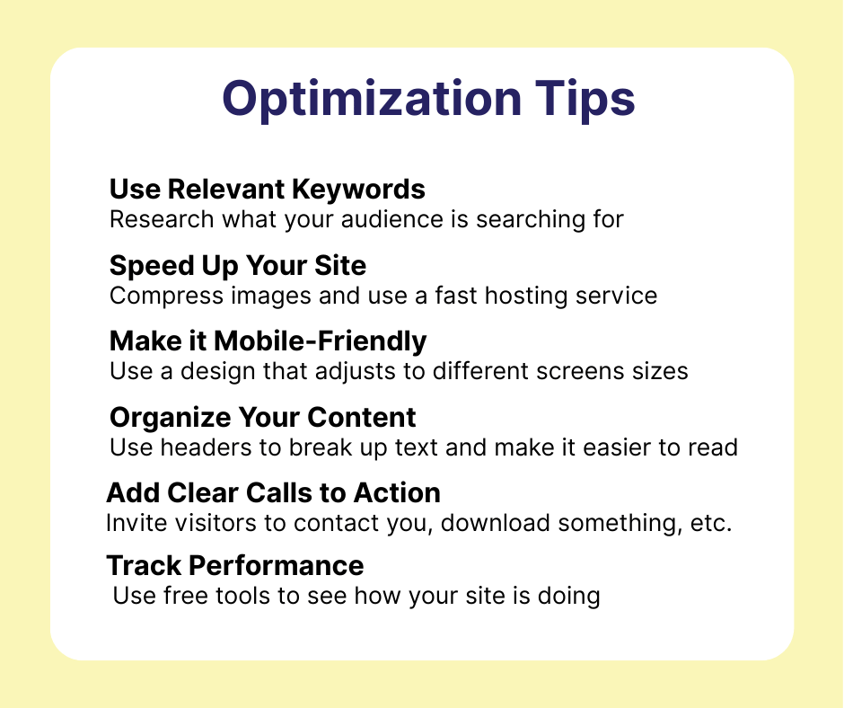 Ready to improve your website’s performance? Here are some beginner-friendly website optimization tips: